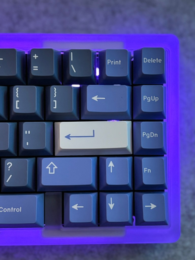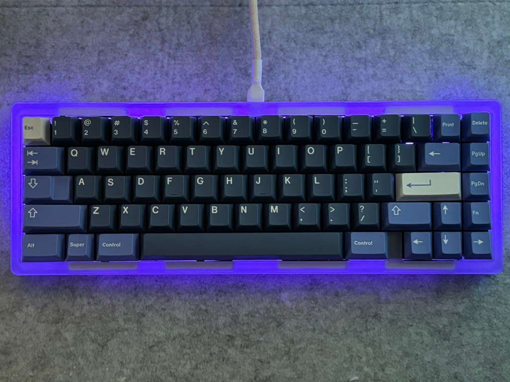 In keeping with this week’s Huano Populus Yellow theme, I’ve got a tasty new build for you. This is a polycarbonate Kohaku (carbon fiber plate) with GMK Blurple keycaps and Huano Populus Yellow switches. I’m usually not an RGB person, but this board’s underglow is unreal.