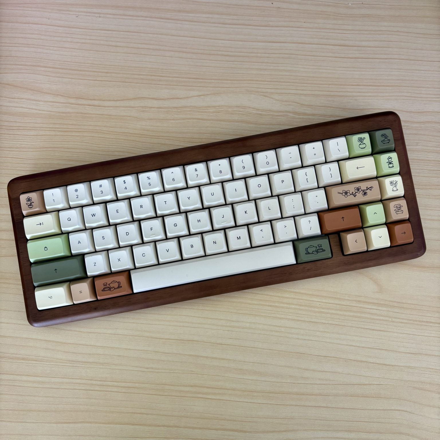 Dusk67 is #wooden, #quiet, #lightweight, and #beginner-friendly. I think Dusk67 would be great for an #earthy or #witchy build, or for a #silent build. I love how it looks with Osume Marshmallow Zen keycaps, but I could see it going well with so many other sets (GMK Botanical, GMK Dandy, PBTFans Emma, Keykobo Boundless Jakata…) I haven’t seen many wooden boards at this price point, so if you’re looking for a lovely walnut case and a muted sound signature and press feel, give Dusk67 a try.