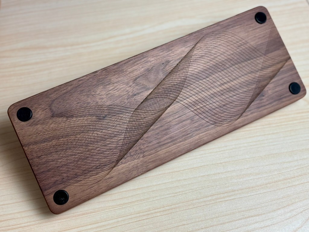 Dusk67 is very lightweight and very quiet. The wooden case mutes the board’s sound, especially when compared to the resonance of a metal or even a polycarbonate board. The board’s sound is softened even further by the silicone pad that fits between the plate and the PCB. The silicone pad also absorbs a lot of energy from each keypress, so the typing feel–like the sound– is muted. Not a lot of vibration or resonance with this board.